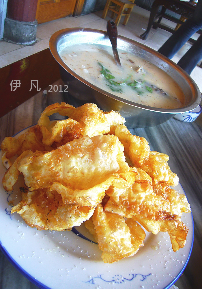 嬸姐問我們想吃甚麼,記得書上介紹當地其中一樣特產是左邊的炸乳扇,所以點了一客.份量多得嚇人,而且只是油味糖味和奶味,淺嚐還好,一整碟要兩個人吃真的太可怕了.